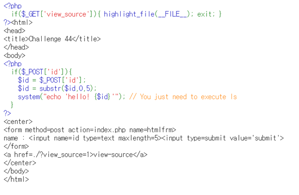 이 코드를 우회시켜 ls 명령어를 실행시키면 된다라고 나와있다.(힌트)